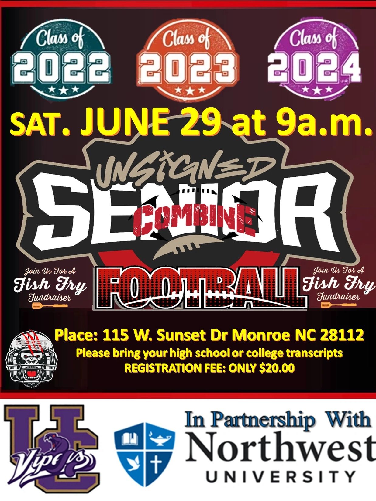 Address 115 W. Sunset Dr Monroe NC Time: 9AM WE WILL ALSO HAVE A FISH FRY FUNDRAISER!